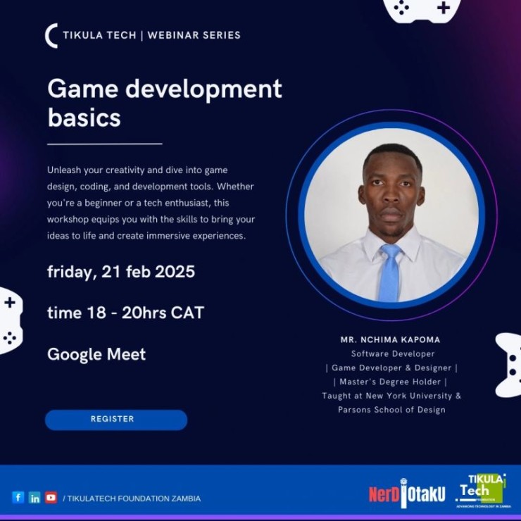 Join us for an exclusive webinar on Game Development Basics with Nchima Kapoma, a seasoned software developer with over a decade of experience. With a Master’s Degree in Game Design and teaching experience at New York University and Parsons School of Design, he will guide you through the fundamentals of game development.
