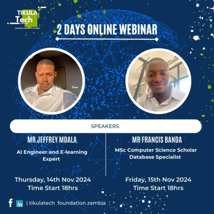 Join us for a transformative online webinar at TikulaTech Foundation on November 14th & 15th, 2024! 🚀Dive deep into the transformative power of technology in Zambia's landscape.